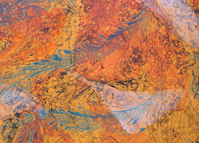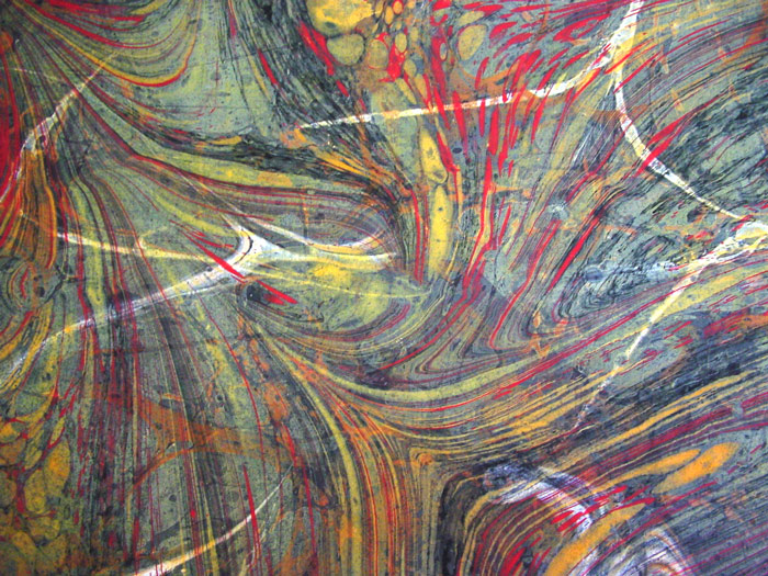 Pour réaliser leurs reliures, je propose à mes élèves les papiers marbrés de Claire Guillot. Ils sont somptueux, vifs, étranges, mystérieux ou très sensibles, toujours originaux et enthousiasmants.